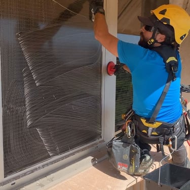 LA SÉCURITÉ • Nos cordistes sont formés, certifiés et équipés pour travailler dans le strict respect des normes en vigueur. De l’étude du site à la mise en place des ancrages, chaque étape est contrôlée pour garantir un chantier parfaitement maîtrisé.