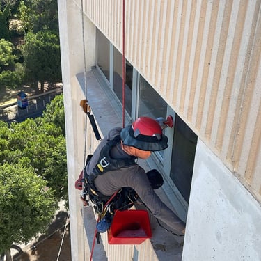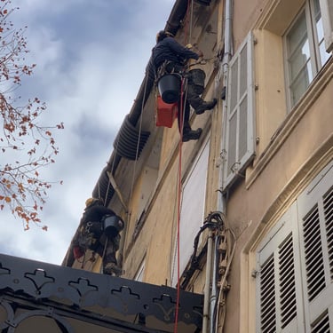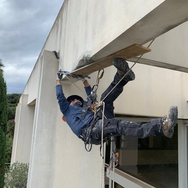 Nous intervenons sur cordes dans les endroits difficiles d’accès là où les moyens traditionnels comme les échafaudages ou les nacelles, s’avèrent compliqués à mettre en place.