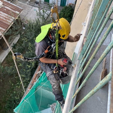 LA POLYVALENCE • Grâce à nos compétences techniques et à la souplesse qu’offrent les travaux sur cordes, nous intervenons aussi bien pour de la maintenance, de la réparation, de l’inspection ou de la sécurisation, et ce dans des environnements très variés : immeubles, industries, monuments, zones difficiles d’accès… Cette adaptabilité fait de nos cordistes de véritables spécialistes capables de répondre à des besoins multiples avec précision et efficacité.